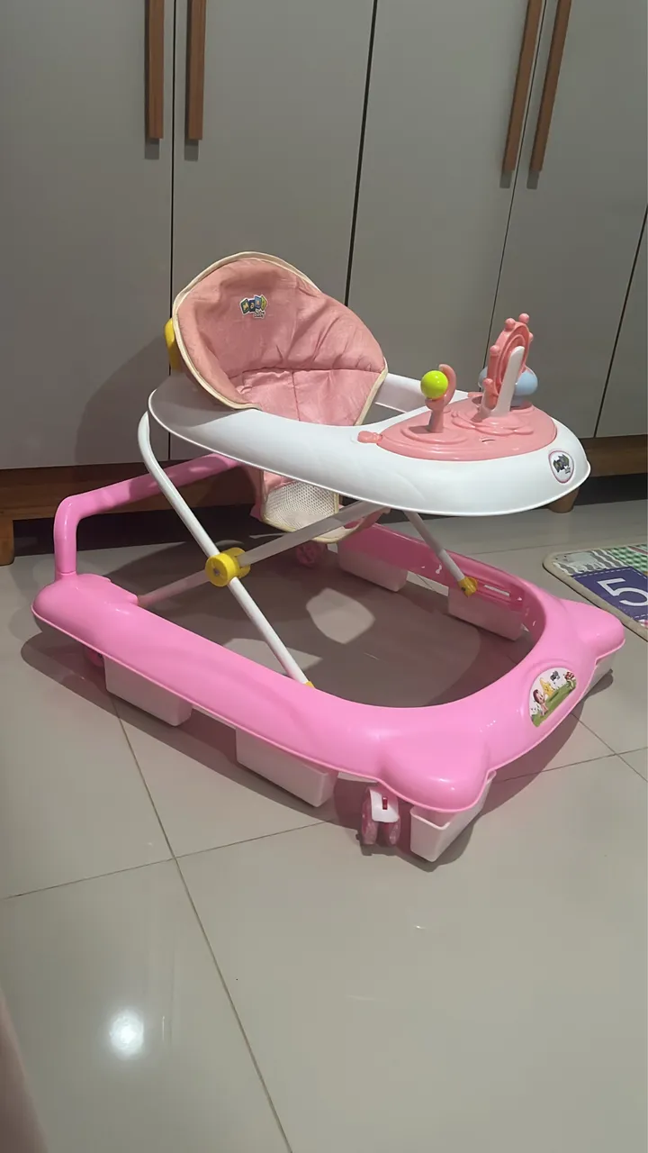 Andador infantil rosa, perfeito para auxiliar nos primeiros passos do seu bebê! Com design seguro e divertido, estimula a coordenação motora e oferece entretenimento com seus brinquedos interativos.