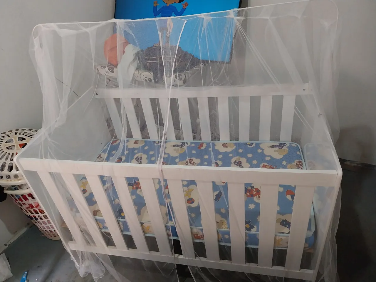 Lindo berço branco para o seu bebê! Conforto e segurança garantidos. Acompanha mosquiteiro para proteger seu pequeno dos mosquitos.