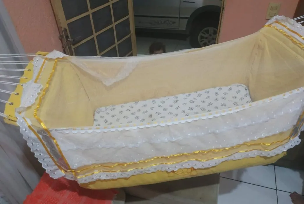 Rede berço/Com colchão e Com mosquiteiro, proporciona conforto e proteção contra insetos. Design charmoso e aconchegante, ideal para o descanso do seu pequeno.