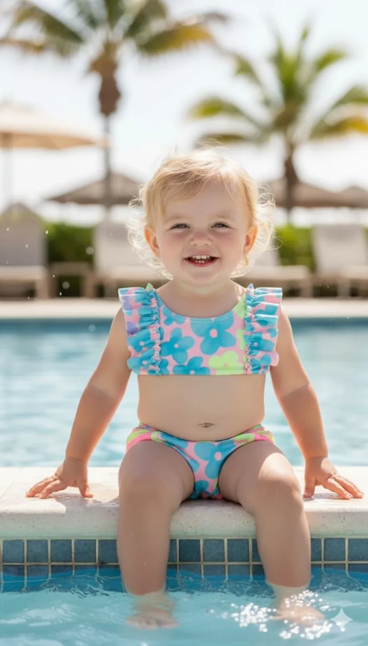 Lindo biquíni infantil, perfeito para os dias de sol e diversão na praia ou piscina. Estampa vibrante e confortável para sua pequena aproveitar o verão com muito estilo!