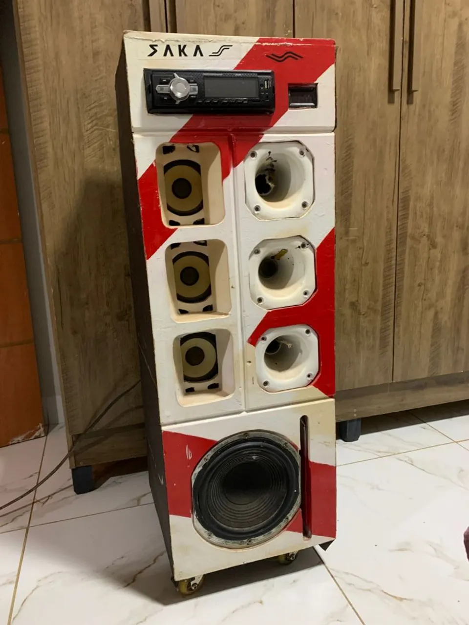 Vendo caixa de som estilo paredão/trio pronta para uso. Sistema já montado com fonte interna ? liga direto na tomada (não precisa bateria).