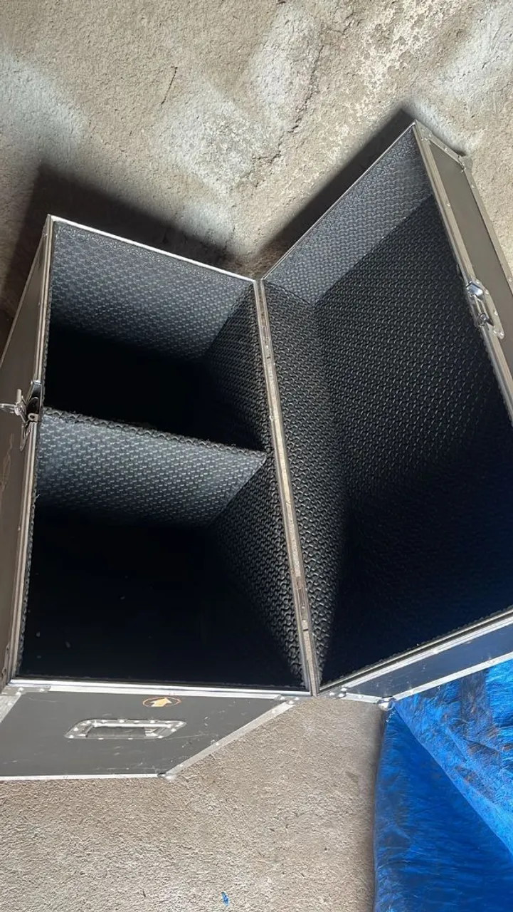 Case baú ideal para transporte e armazenamento seguro de caixas e cabos de som. Design resistente e compartimentos internos para organização.