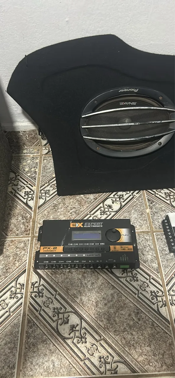 -Grave 12 polegadas cara preta (pionner) + caixa dutada -Par de 6x9 snake (280rms) -Tweeter JBL caveirinha (150 rms) -Módulo Taramps 800 -Módulo Stetsom 800 -Processador de áudio digital EX Expert Estou vendendo barato porque vendi meu carro VENDA RÁPIDA