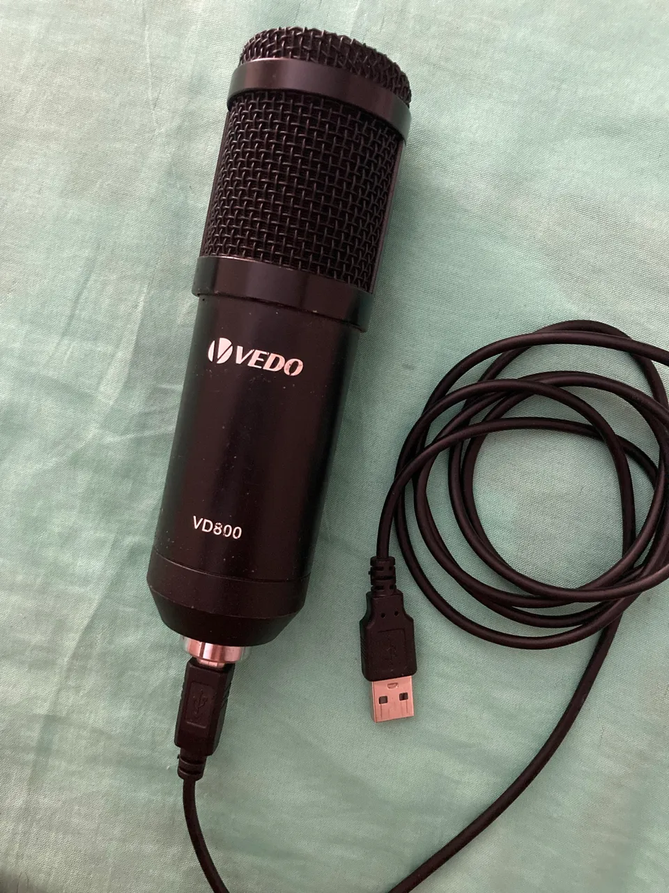 Microfone USB VEDO, ideal para gravações e transmissões com alta qualidade de áudio. Design moderno e fácil de usar, perfeito para quem busca um som nítido e profissional.