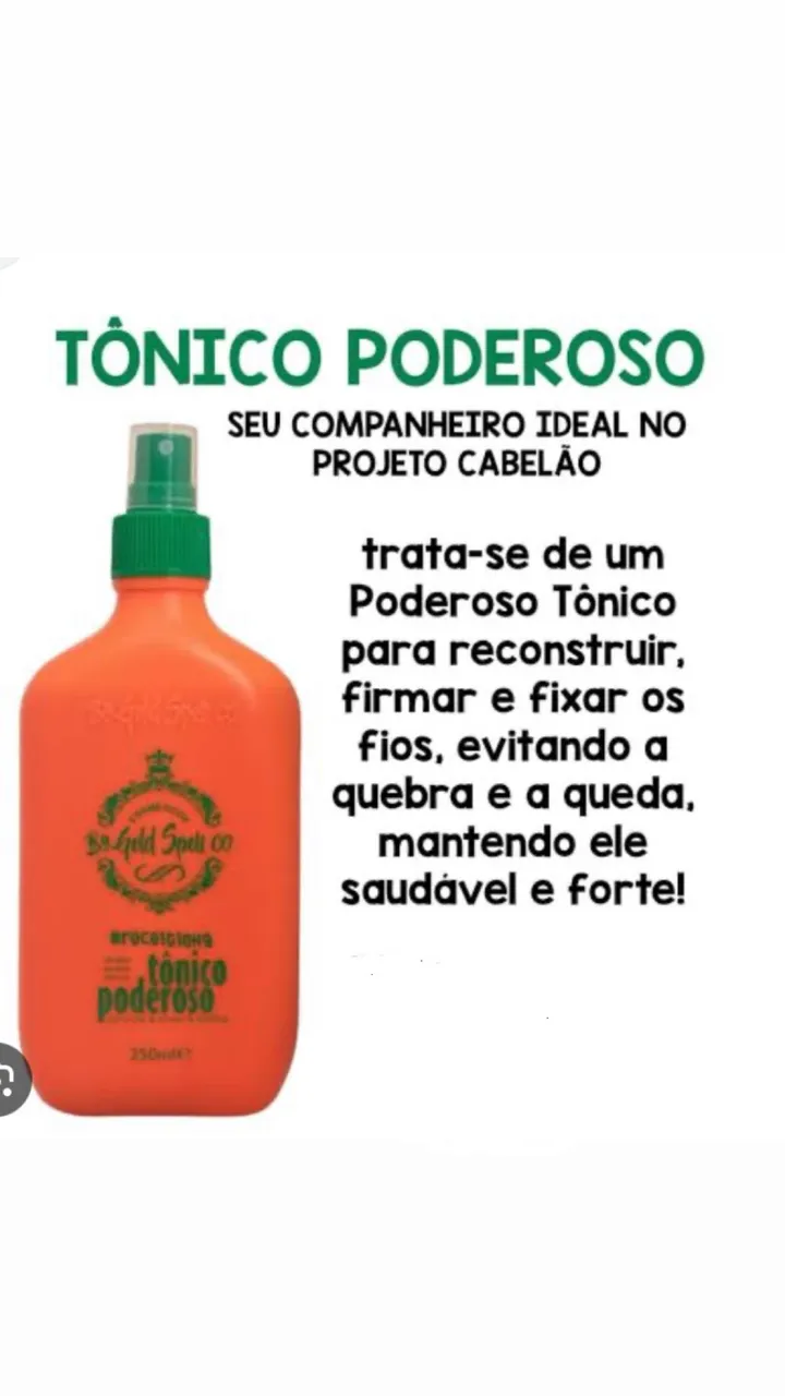 Transforme seus cabelos com o Tônico Poderoso! Fórmula poderosa que reconstrói, firma e fixa os fios, combatendo a quebra e queda, para um cabelo saudável e forte.