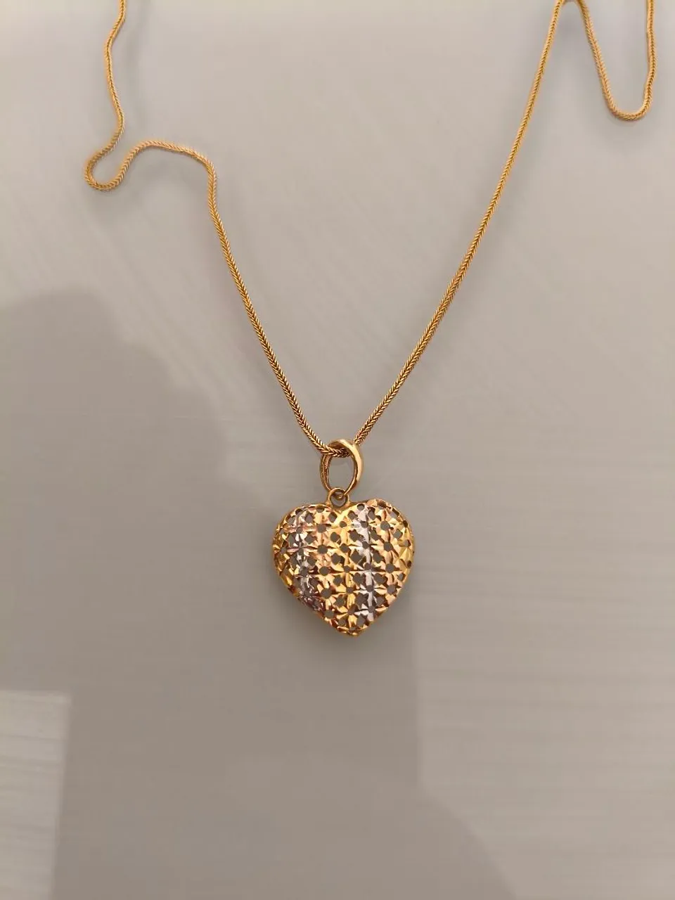 Lindo colar e pingente de ouro 18k com pingente em formato de coração. Uma joia delicada e charmosa para realçar sua beleza e estilo! Peso: 4.2 gramas ( colar e pingente) Valor: 3200 reais