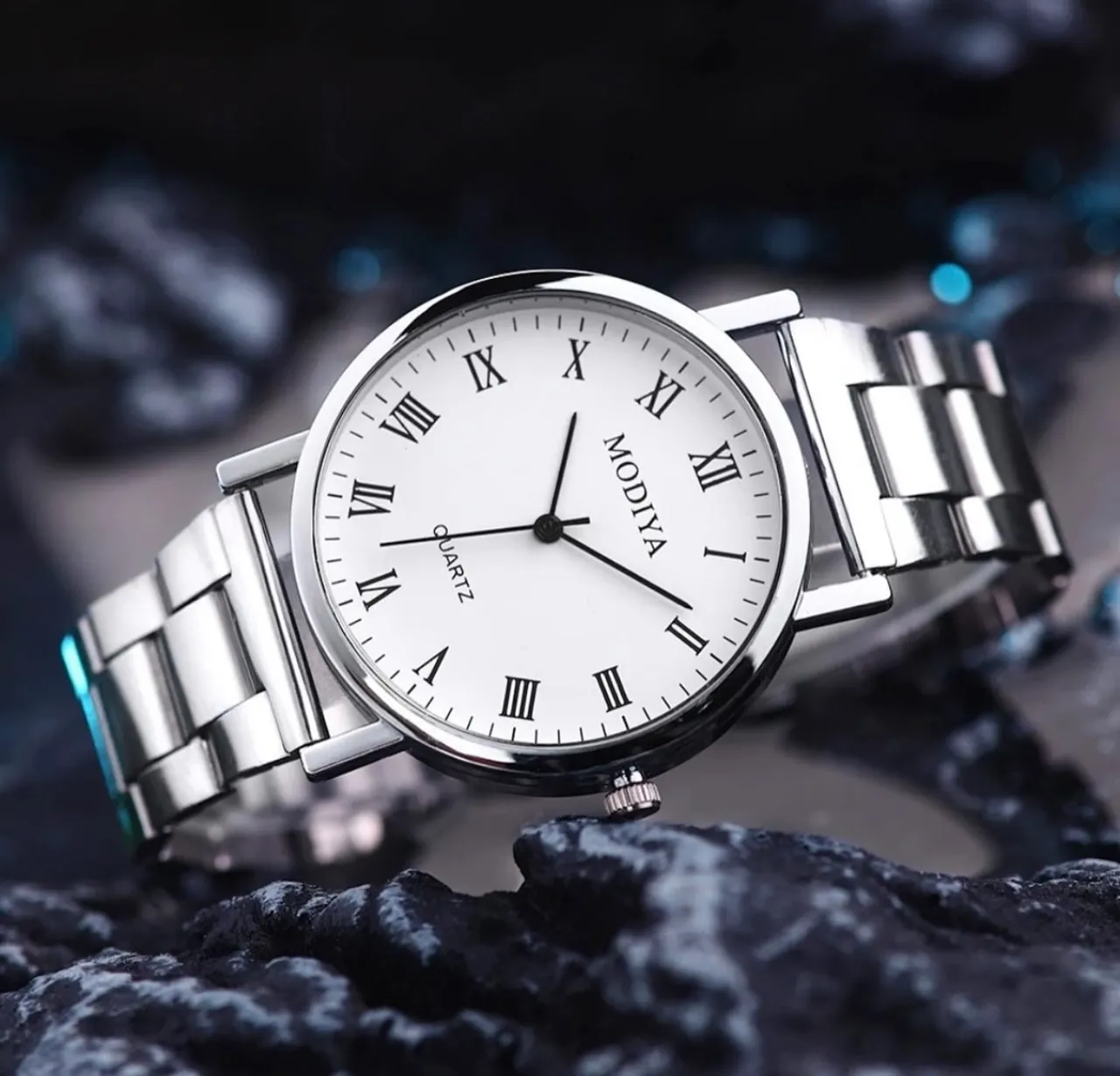 Relógio masculino elegante e sofisticado, perfeito para complementar seu estilo. Design moderno com mostrador branco e pulseira de metal prateada. Ideal para diversas ocasiões!