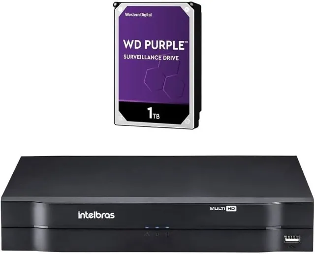 DVR Intelbras 4 canais com HD de 1Tb equipamento seminovo funcionando 100%. Acompanha fonte, HD 1Tb WD Purple