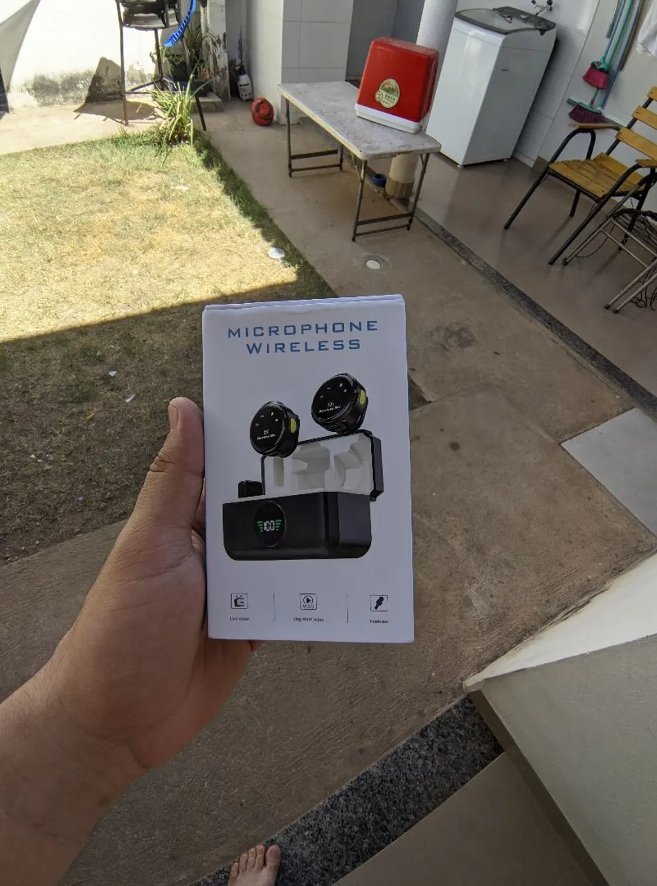 Microfone Wireless para celular, ideal para gravações de vídeos, entrevistas e transmissões ao vivo. Oferece som claro e sem fio. Design compacto e fácil de usar.