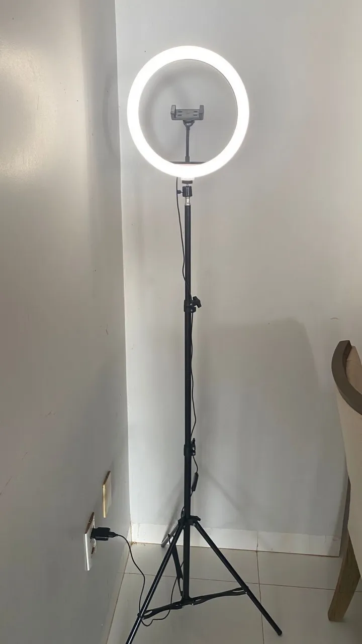 Ideal para fotos, vídeos, lives e maquiagem 3 cores de luz (branca, quente e neutra) Suporte para celular incluso Alimentação USB NOVO NA CAIXA.