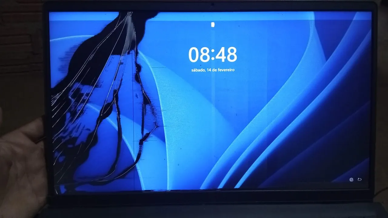 Monitor com tela danificada, ideal para quem busca peças ou conserto. Tela quebrada, mas com potencial para reaproveitamento.