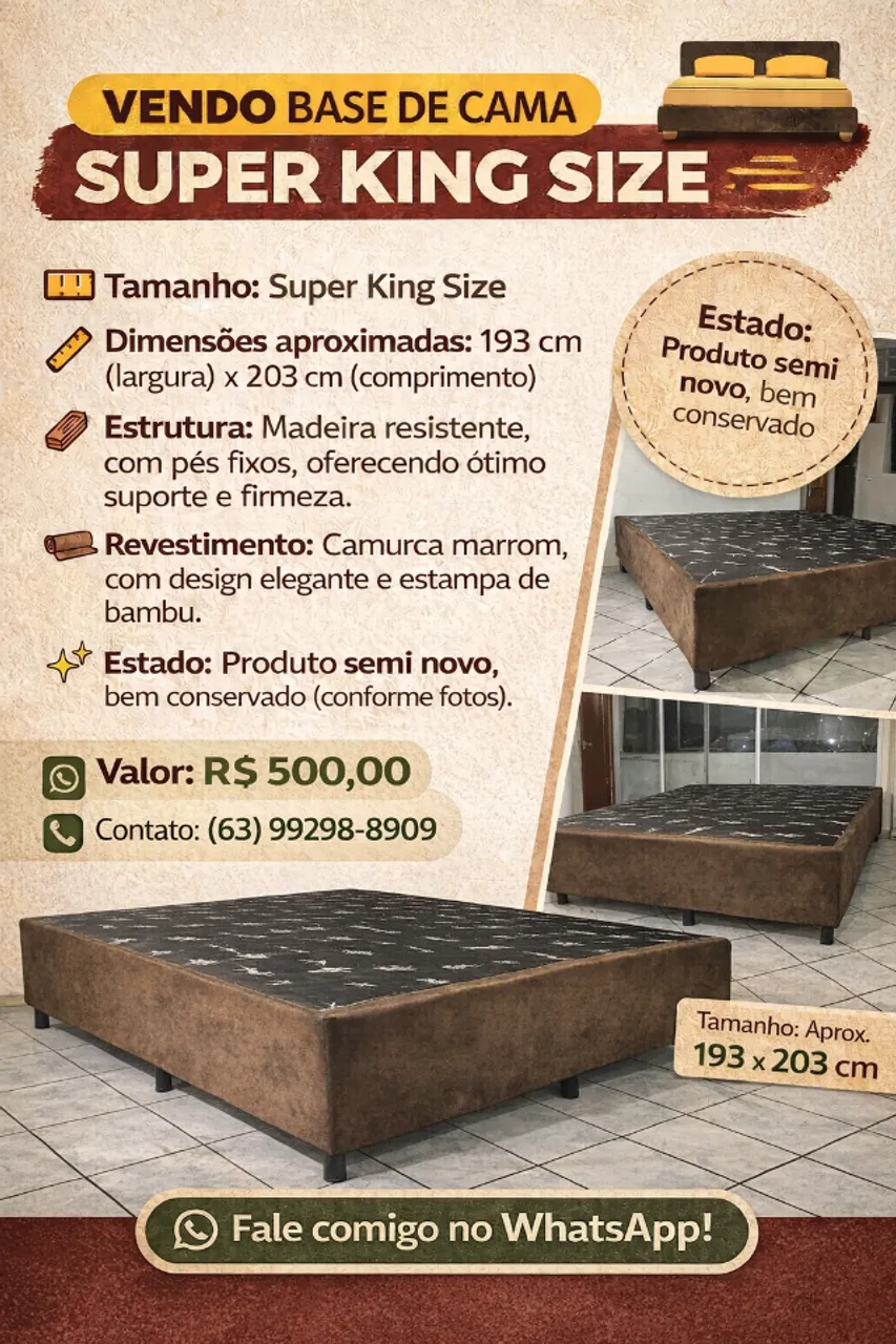 Base de cama Super King Size com design elegante e estampa de bambu. Estrutura em madeira resistente com pés fixos, proporcionando ótimo suporte e firmeza. Revestimento em camurça marrom para um toque de sofisticação.
