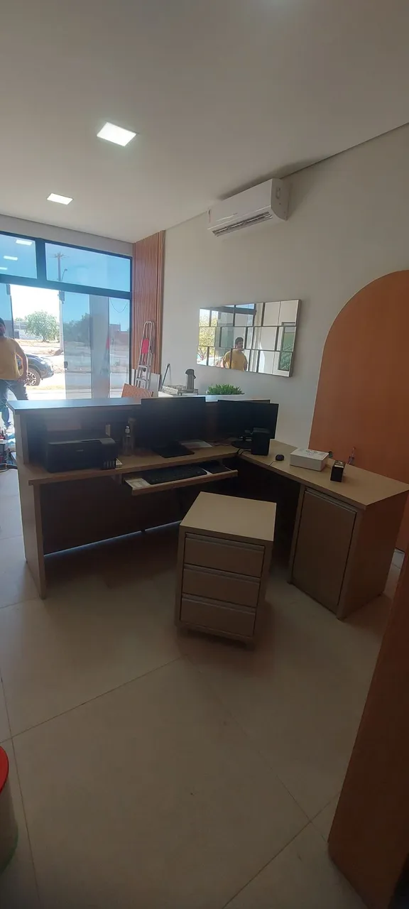 Mesa de escritório em formato L, ideal para otimizar o espaço e proporcionar conforto durante o trabalho. Design moderno e funcional.