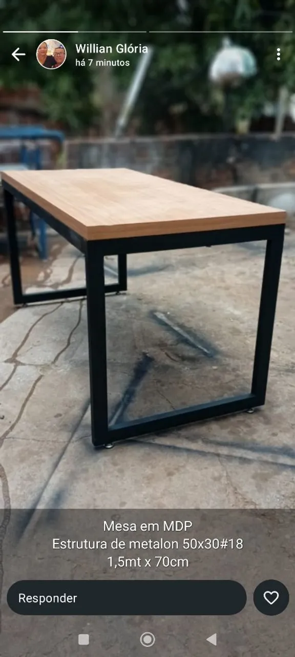 Linda mesa com estrutura de metalon resistente e tampo em MDP. Design moderno e elegante, perfeita para diversos ambientes. Dimensões: 1,5mt x 70cm.