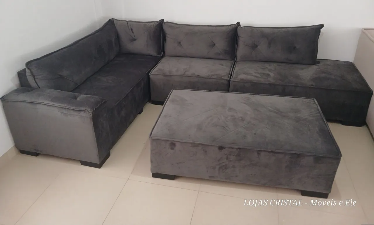 Sofá de Canto Cinza, novo, com design moderno e elegante. Ideal para a sala de estar, proporcionando conforto e estilo. Possui assentos macios e encosto acolhedor. Aproveite!