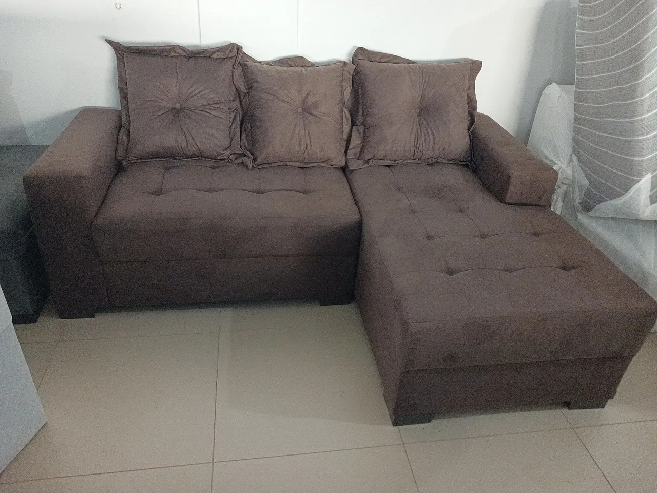 Sofá de Canto com almofadas separadas 3 Lugares Marrom