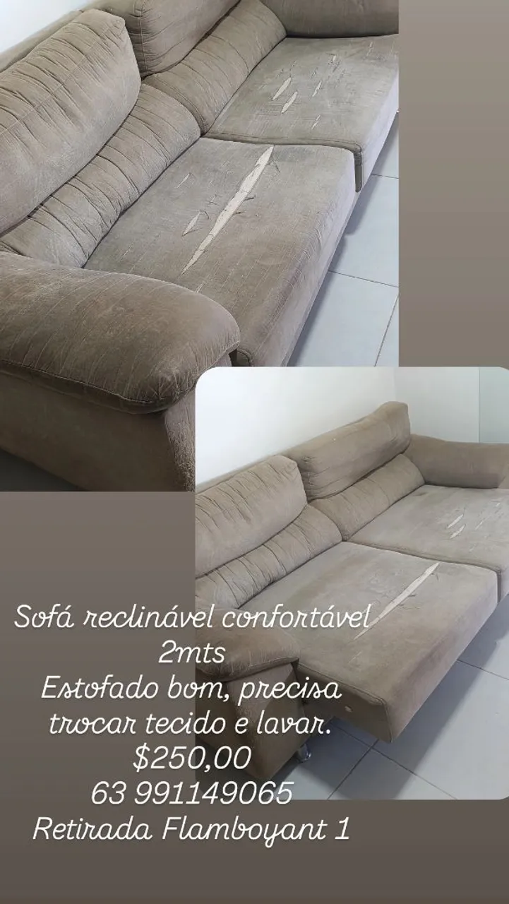 Desfrute do máximo conforto com este sofá retrátil e reclinável! Estofado bom, porém precisa trocar tecido por isso o valor baixo. 6399... ver número