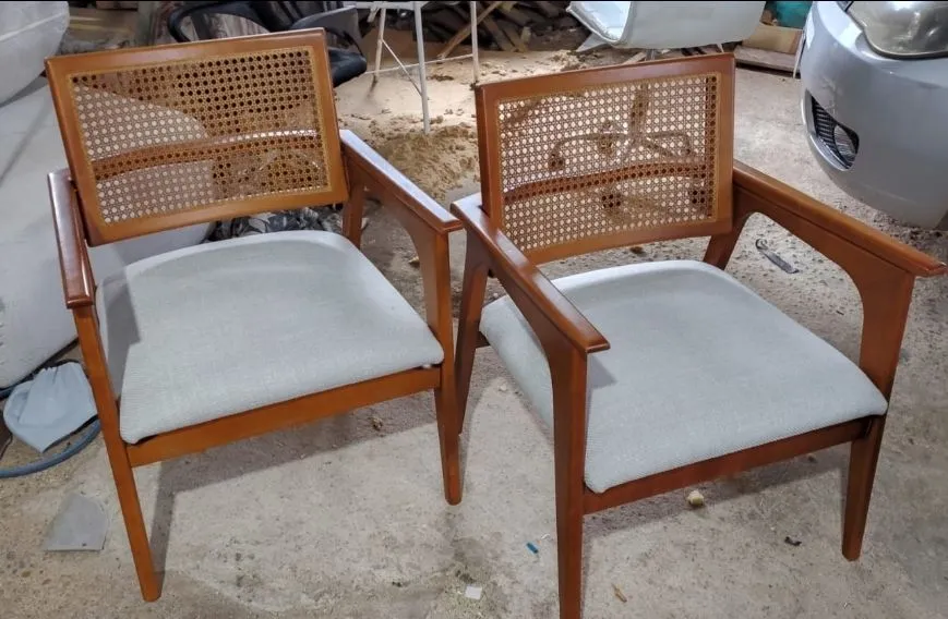 Conjunto de 2 poltronas elegantes em linho, perfeitas em otimo estado