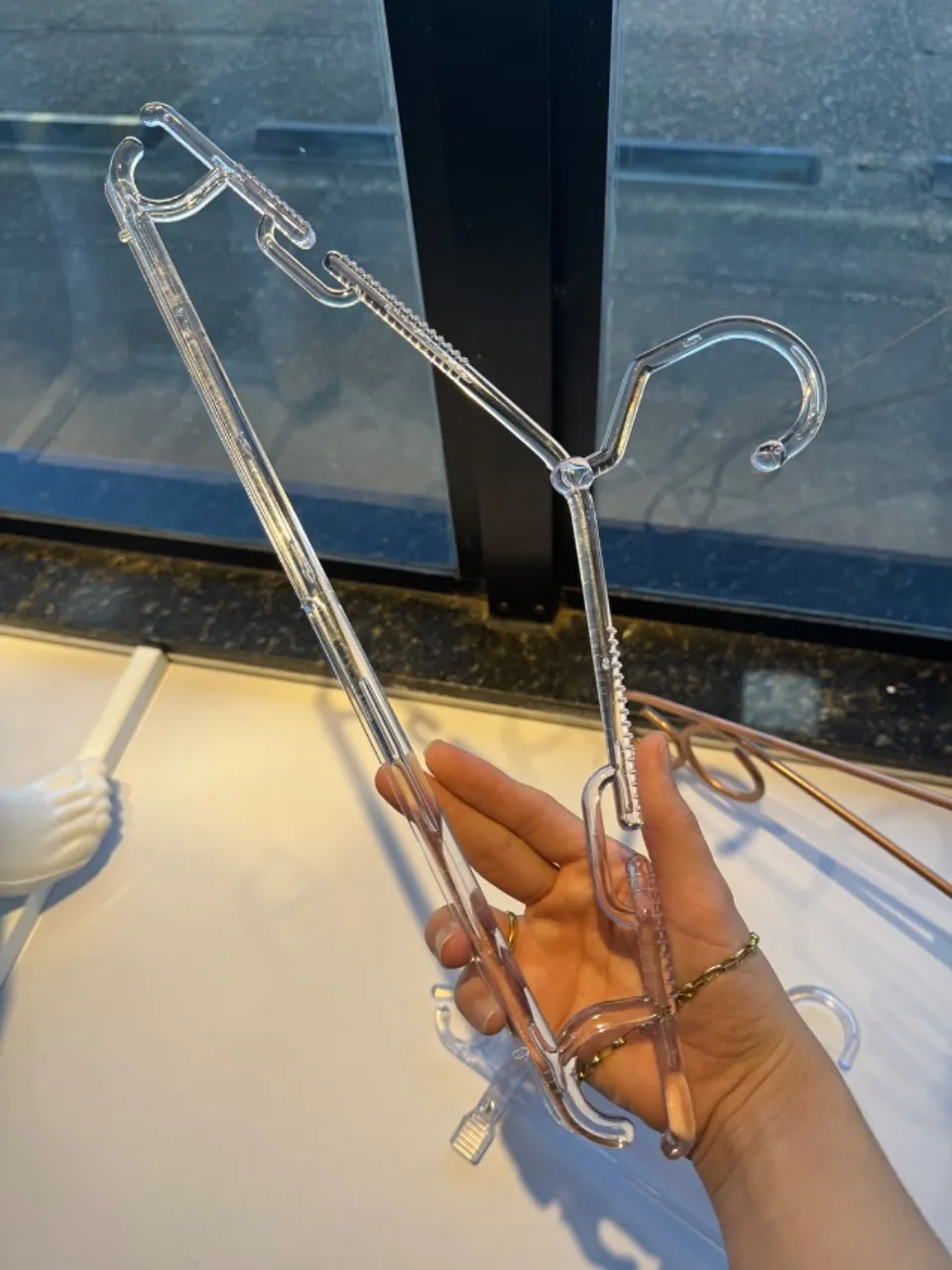 Cabide transparente, perfeito para organizar suas roupas com elegância e praticidade. Design moderno e funcional que se adapta a qualquer estilo de guarda-roupa.